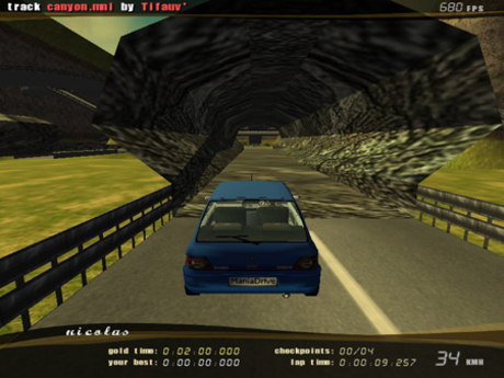 Mania Drive es la versión gratuita del popular juego Track Mania en el que tienes que conducir a toda velocidad tanto por carreteras asfaltadas como por pistas de montaña a ritmo de la música cañera del juego.